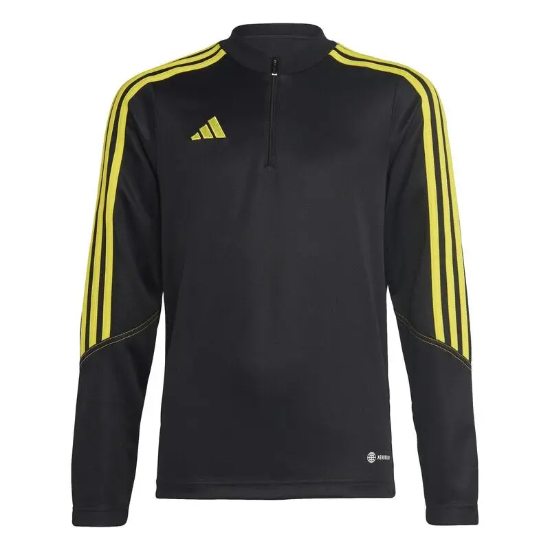 Compra en Decathlon Top de entrenamiento Tiro 23 Club niño Negro Amarillo Los imprescindibles de Adidas para el entrenamiento.Antes de salir al campo con frío, ponte este top de fútbol de niños Tiro 23 Club.