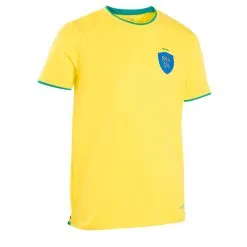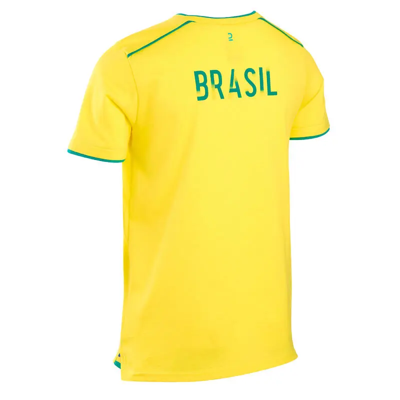 Compra en Decathlon Camiseta de fútbol Brasil Niños Kipsta F100 2022 Diseñada para el joven aficionado apasionado que quiere mostrar con orgullo los colores de su país y de su equipo en cualquier circunstancia